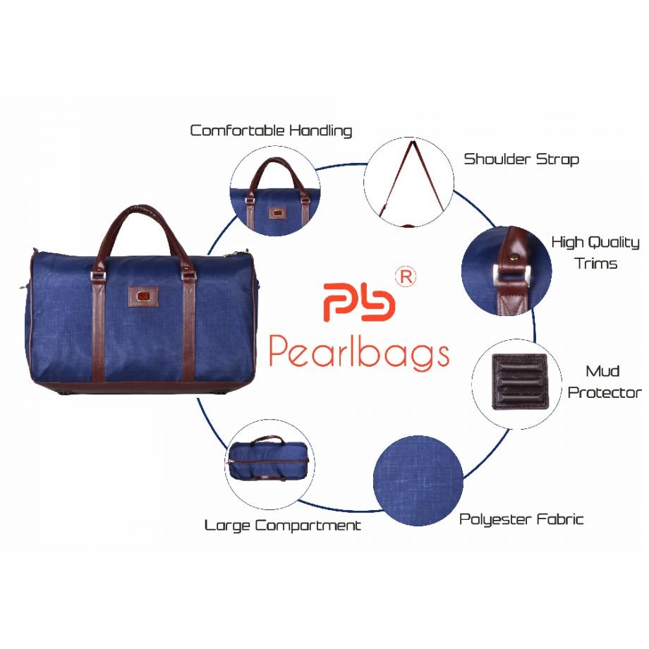 PB- Pearlbags present this duffle bag suitable for long journeys and weekend travels. This lightweight design duffle is a perfect companion for travel needs or extra carry-on luggage for a weekend vacation. It is designed for unisex use and it consists of a large compartment with an inside zipped patch pocket. It is made of water repellent polyester fabric with two soft padded grab handles and also added cushioned padded adjustable straps for easy carrying.