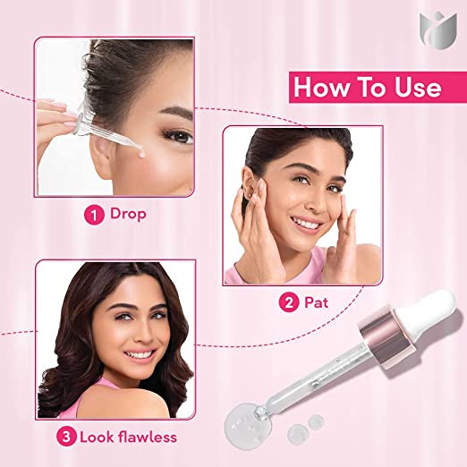 • It's easy to use: just squeeze the dropper, remove it and release 2-3 drops on different areas of your face, pat and then blend it into your skin.
